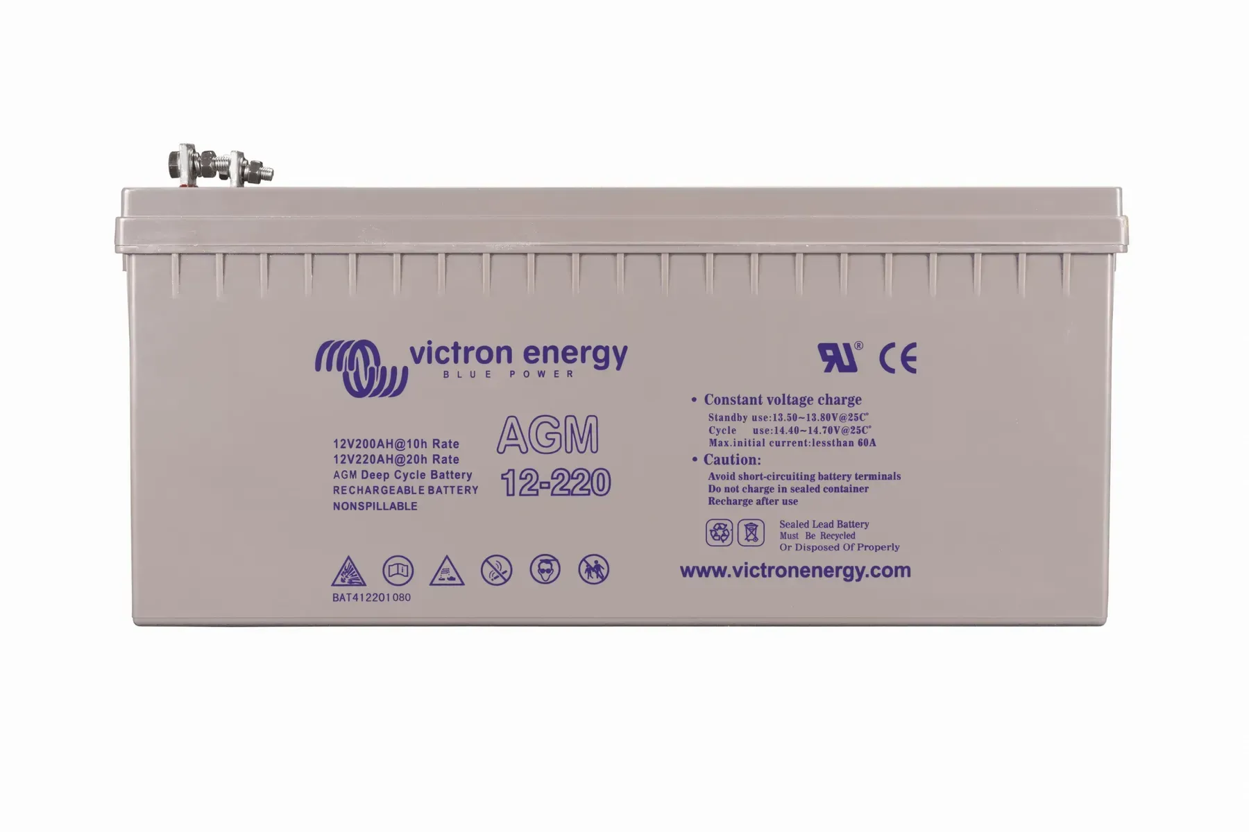Аккумуляторная батарея Victron Energy 12V/220Ah AGM Deep Cycle (M8) (BAT412201085) предназначена для систем автономного и резервного электроснабжения, где требуется высокая надежность и стабильная отдача энергии. Модель выполнена по технологии AGM, при которой электролит абсорбирован в стекловолоконных сепараторах, что обеспечивает герметичность конструкции и безопасность эксплуатации без необходимости обслуживания.