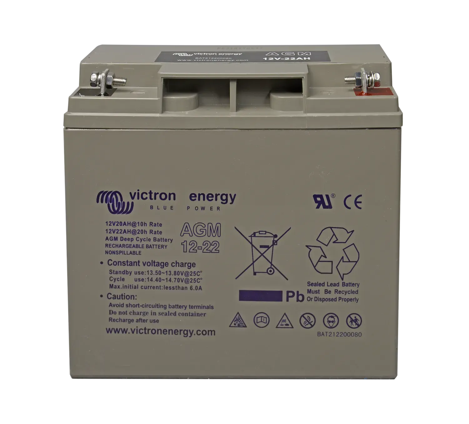 Аккумуляторная батарея Victron Energy 12V/22Ah AGM Deep Cycle (BAT212200084) представляет собой компактный и надежный источник энергии, предназначенный для автономных и резервных систем питания, где важна стабильная работа при циклических нагрузках. Эта модель выполнена по технологии AGM, при которой электролит абсорбирован в стекловолоконных сепараторах, что обеспечивает герметичность конструкции, безопасность эксплуатации и возможность использования без регулярного обслуживания. Конструкция Deep Cycle адаптирована к глубоким разрядам, позволяя сохранять рабочие характеристики даже при интенсивном циклическом использовании.
