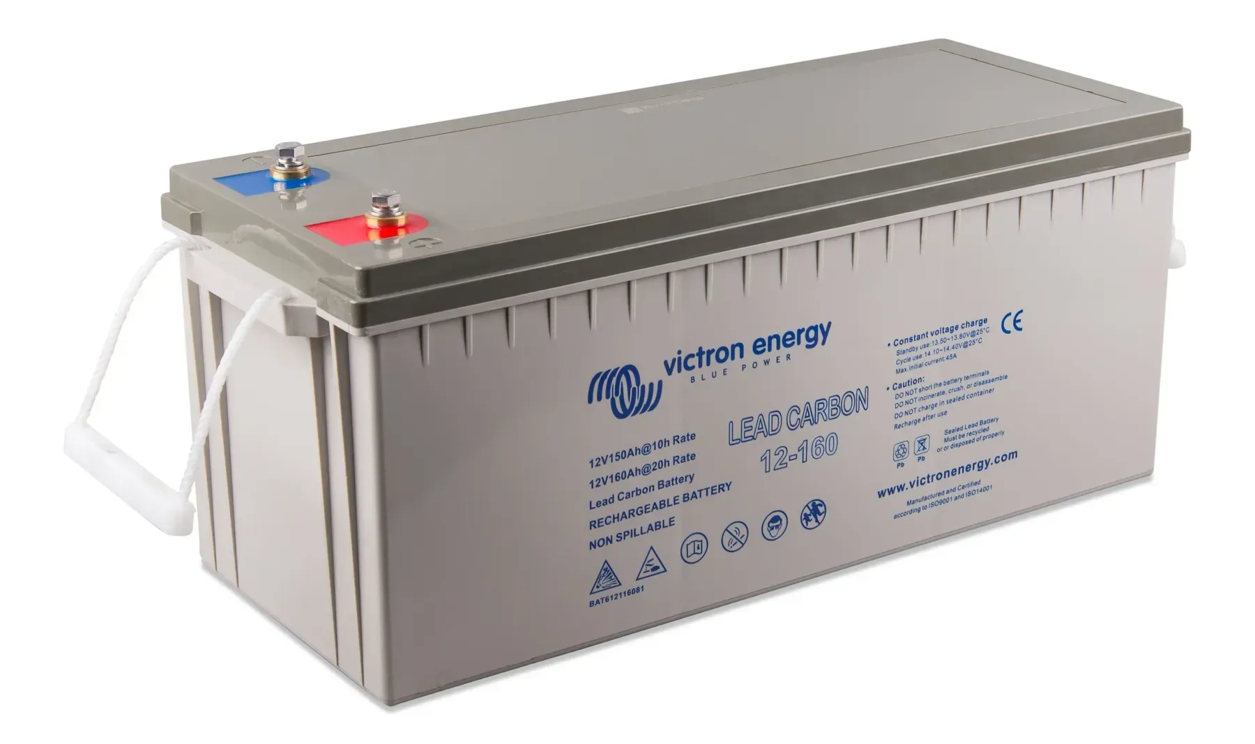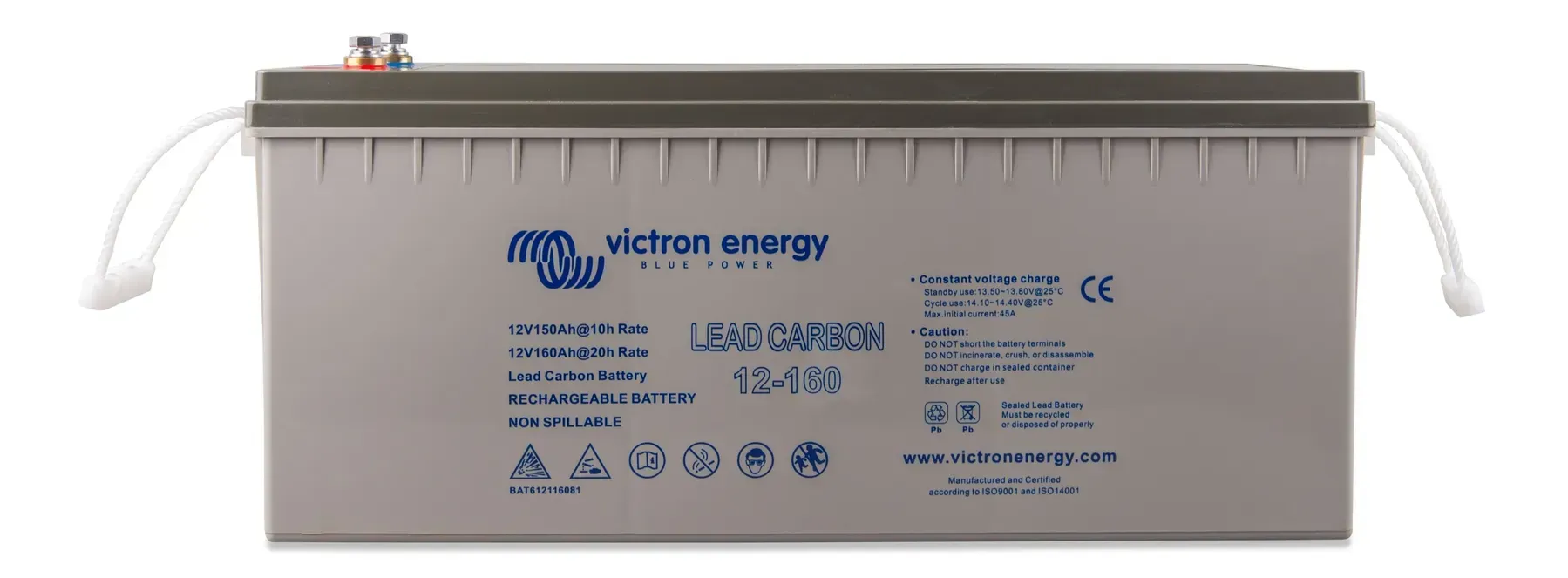 Герметичный корпус не требует обслуживания и безопасен при эксплуатации в закрытых помещениях. Резьбовые клеммы типа M8 обеспечивают надежное подключение силовых кабелей и стабильный электрический контакт. Аккумуляторная батарея Victron Energy Lead Carbon Battery 12V/160Ah (M8) (BAT612116081) сочетает высокую энергоемкость, устойчивость к интенсивным циклам и соответствие строгим стандартам качества Victron Energy.