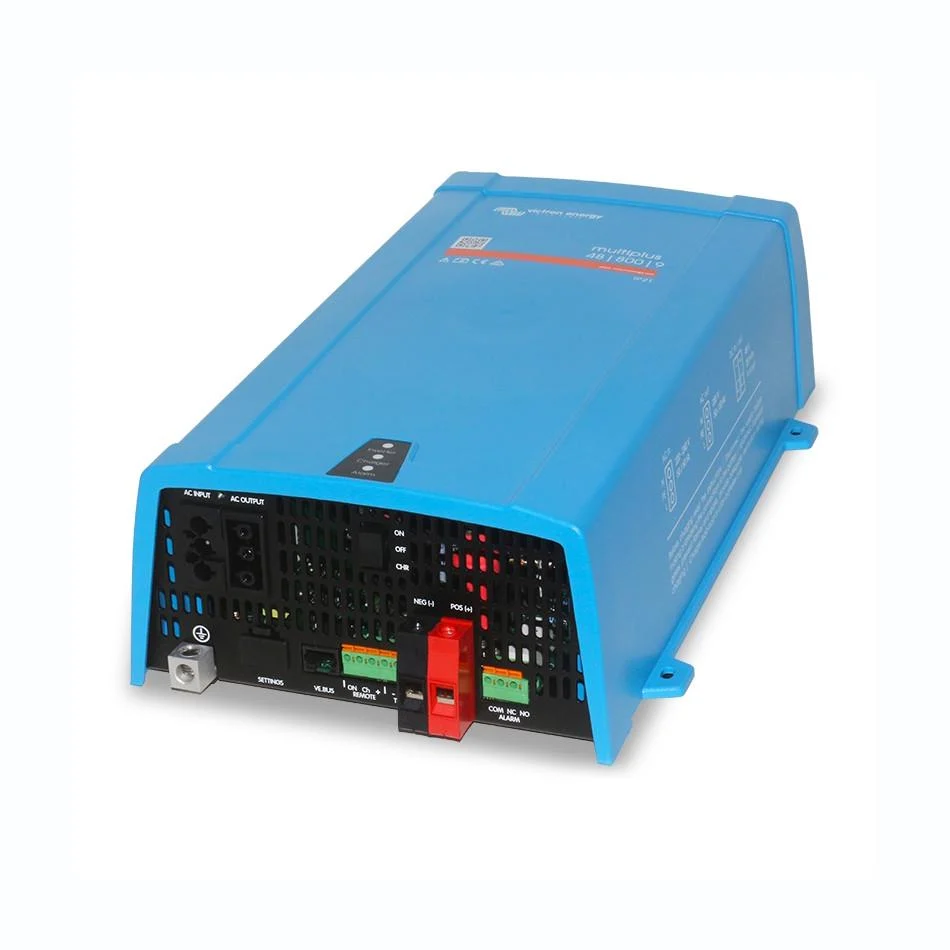 MultiPlus поддерживает объединение до 6 устройств в параллель или построение трёхфазной системы, что позволяет увеличить общую мощность при необходимости.
