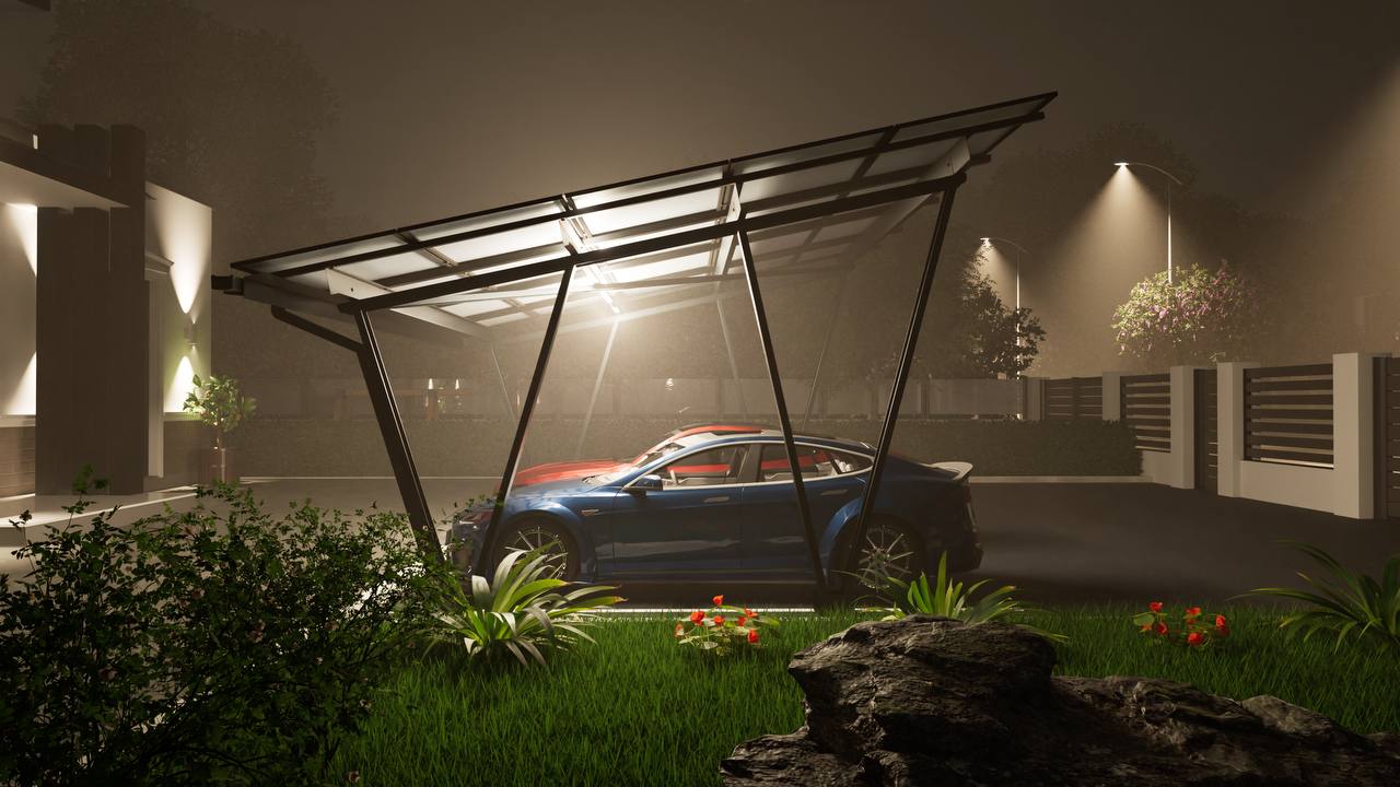 Карпорт Pillar Model W L type — это современное решение для организации парковочного пространства с интеграцией солнечных панелей. Он сочетает в себе стильный дизайн, прочную конструкцию и возможность генерации электроэнергии, обеспечивая защиту автомобилей от неблагоприятных погодных условий и способствуя устойчивому энергопотреблению.