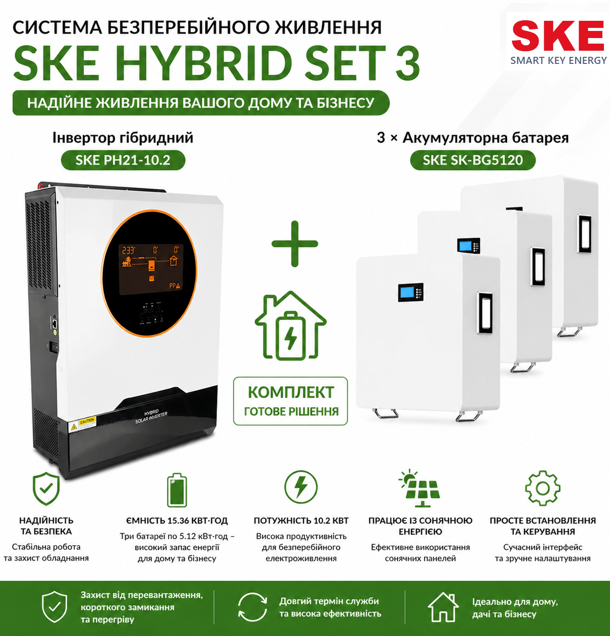 SKE HYBRID SET 3 — это идеальный выбор для тех, кому необходимы максимальная мощность, длительная автономность и полная энергонезависимость.