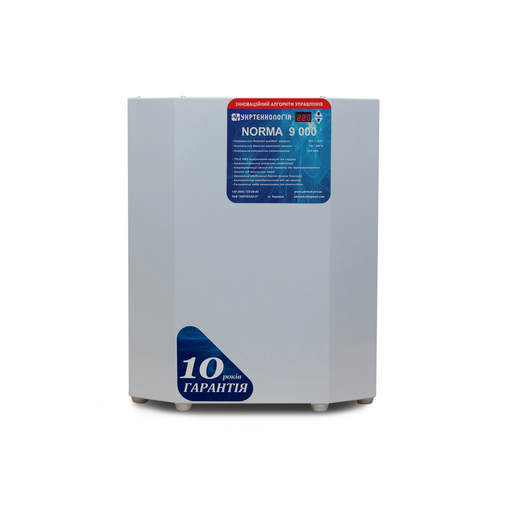 Стабилизаторы NORMA ТМ Укртехнология (украинского производства) являются наиболее бюджетной серией бренда и имеют 9 ступеней стабилизации с погрешностью 6%.
