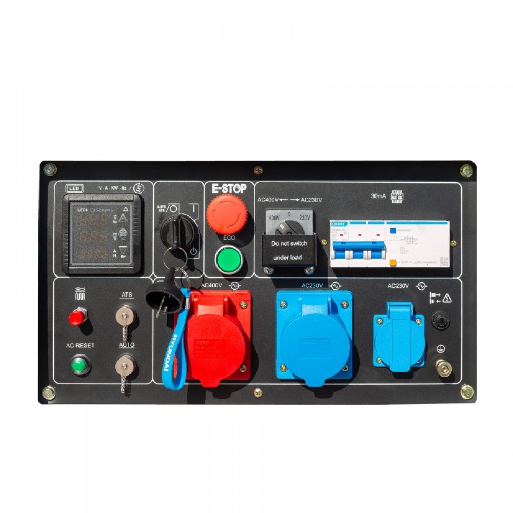 Дизельний інверторний генератор HYUNDAI DHY 9000SEI-T — це високотехнологічне рішення, призначене для стабільного та якісного живлення в різноманітних ситуаціях — від резервного живлення до автономної роботи. Він обладнаний потужним 4-тактним дизельним двигуном HYUNDAI, спеціально розробленим для інверторних систем, що гарантує рівномірну роботу з мінімальними коливаннями та низьким шумом. Пристрій підтримує вихідну напругу 230 В/400 В та частоту 50 Гц, завдяки чому підходить як для побутового, так і для комерційного застосування.