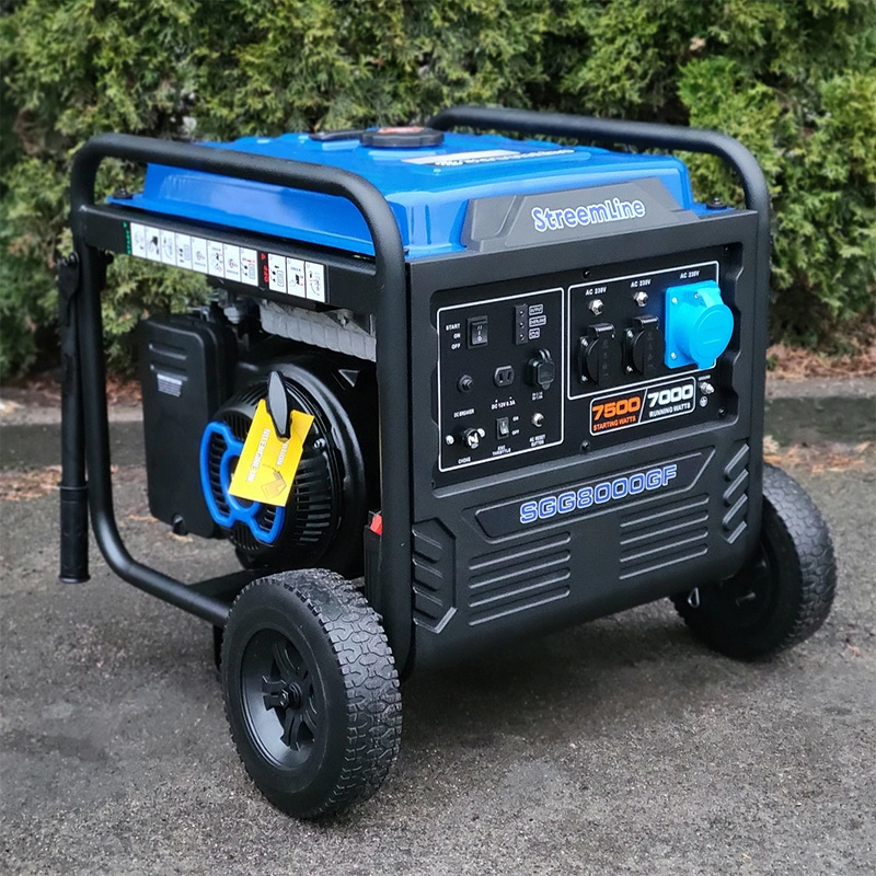 Модель оснащена зручною та інтуїтивно зрозумілою панеллю керування, а також електростартером, що дозволяє здійснювати запуск легко та без зайвих зусиль. Висока надійність генератора підтверджена збільшеним гарантійним терміном у 2 роки, а спеціальні системи захисту — від перевантаження та від низького рівня мастила — забезпечують стабільну роботу та запобігають передчасному зносу двигуна. Компактна та продумана конструкція дає змогу використовувати Streemline SGG8000GF у широкому спектрі завдань: від домашнього резервного живлення до застосування у бізнесі чи виробничих процесах.