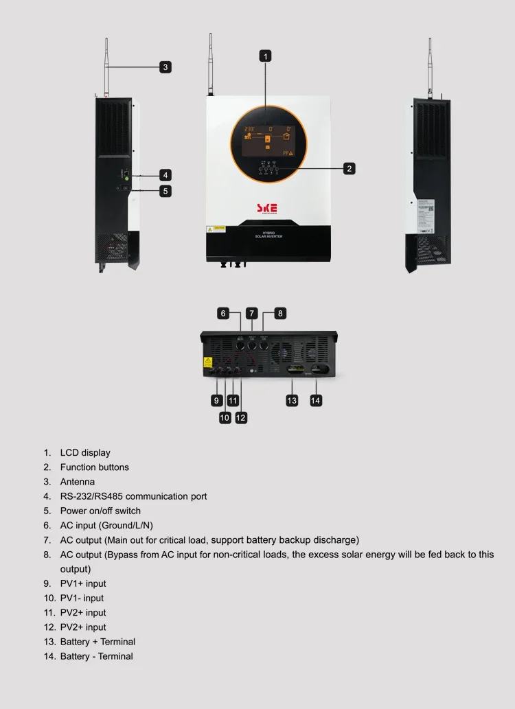 PH21 — це серія гібридних інверторів із чистою синусоїдою, призначених для резервного та автономного електроживлення. Моделі 6.2K та 10.2K відрізняються номінальною потужністю 6,2 кВт та 10,2 кВт відповідно.