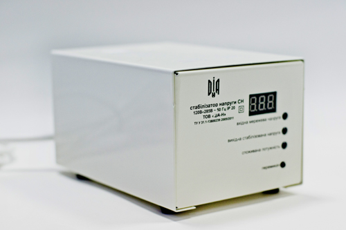 Відключення стабілізатора відбувається також при зниженні напруги в мережі менше 120 В або підйомі більше 285 В.крім того забезпечена поперемінна індикація рівня вхідного (в мережі живлення), вихідного (стабілізованого) напруги і рівня споживаної потужності.